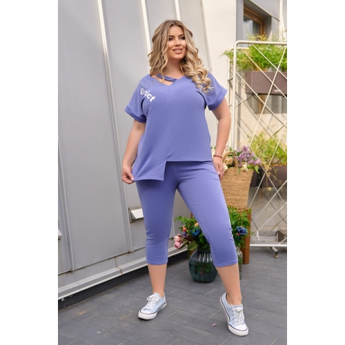 Костюм Тканина: Двонитка Фактичні виміри виробу: Розмір 44-46 Футболка: ОГ = Від – 100 см, довжина 70/60 см, рукав від горловини – 25 см Бриджі: зовніш./внутр. шов – 77/53 см, обхват талії (вільно/в розтягуванні) – 76/96 см, обхват стегон – 102 см Розмір 48-50 Футболка: ОГ = Від – 106 см, довжина 72/62 см, рукав від горловини – 27 см Бриджі: зовніш./внутр. шов – 78/51 см, обхват талії – 80/100 см, обхват стегон – 112 см Розмір 52-54 Футболка: ОГ = Від – 112 см, довжина 72/62 см, рукав від горловини – 27 см Бриджі: зовніш./внутр. шов – 78/51 см, обхват талії – 88/108 см, обхват стегон – 118 см Розмір 56-58 Футболка: ОГ = Від – 120 см, довжина 72/62 см, рукав від горловини – 27 см Бриджі: зовніш./внутр. шов – 78/51 см, обхват талії – 94/114 см, обхват стегон – 124 см