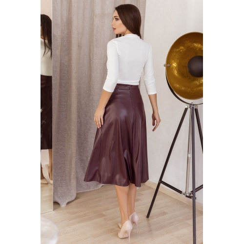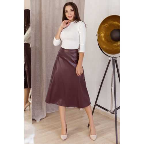 Спідниця розкльошена, довжиною нижче колін з екошкіри
