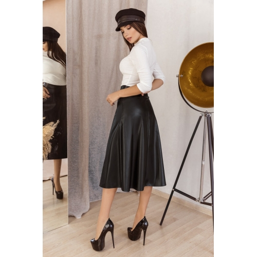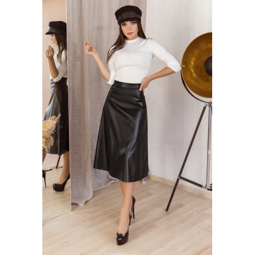 Спідниця розкльошена, довжиною нижче колін з екошкіри