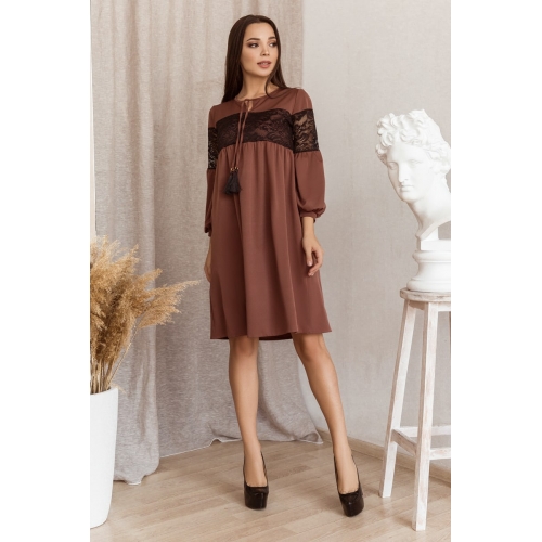 Сукня вільного крою з декоративними шнурками та вставкою з якісного гіпюру.