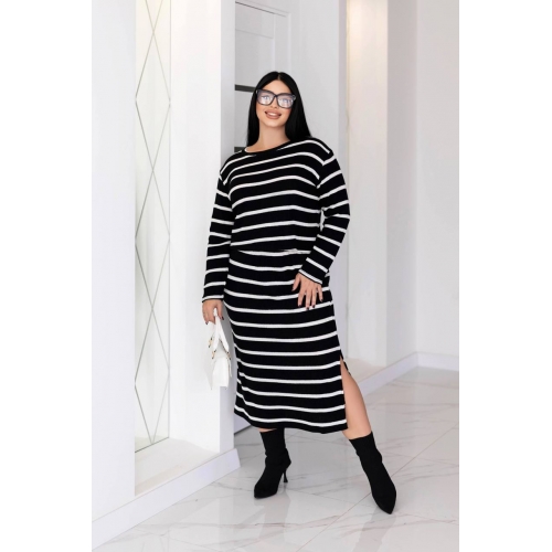 Теплий костюм вʼязка, довгий рукав; спідниця міді на резинці з боку розріз.