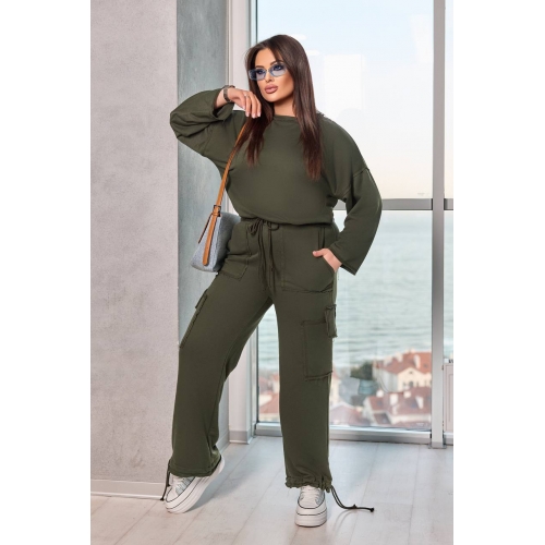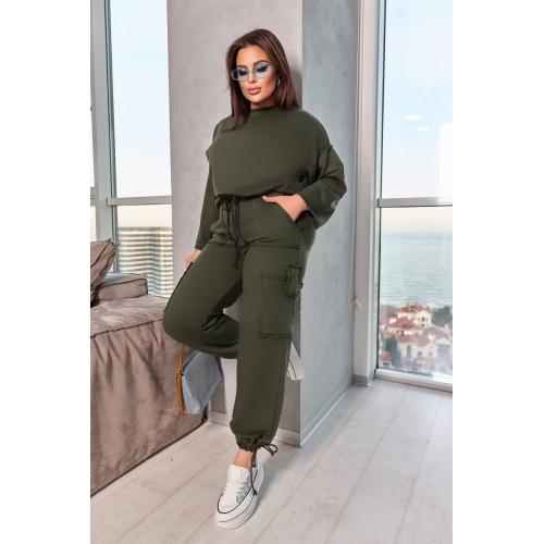 Спортивний костюм, класний варіант для прогулянки, приємний, комфортний крій, цікаві деталі, в такій моделі ви не залишитися не поміченою. Кофта: довгий , приспущений рукав , по низу фіксується канатом, можна регулювати обʼєм; штани: висока посадка,талія на широкій резинці + канат, з боків дві кишені + дві додаткові кишені вище колін з цікавим клапаном, широкий низ штанів, фіксується канатом, можна регулювати обʼєм. Всі декоративні шви зроблені на спецмашинах