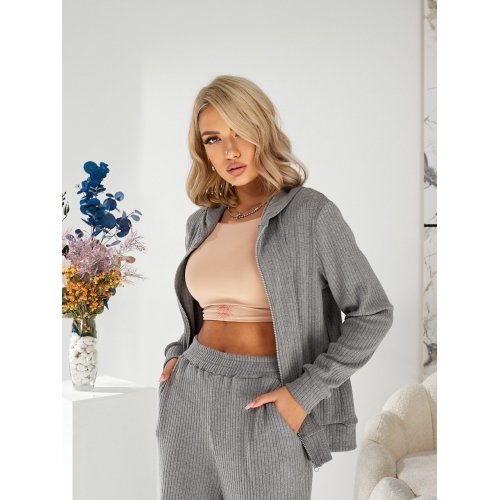 Кофта вільного крою з капюшоном, застібається на блискавку Штани на резинці, 2 кишені.