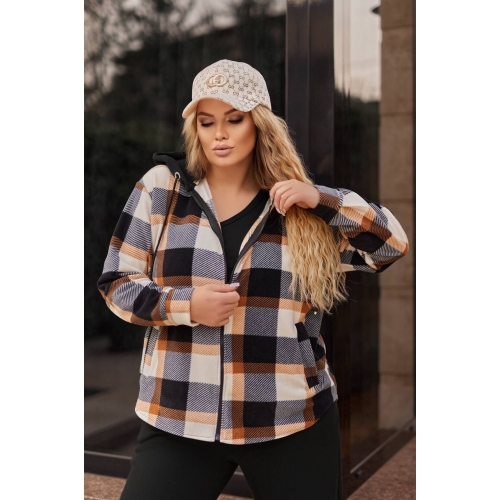 Бомбер з капюшоном, вільного крою на змійці, має зручні кармани листочки.