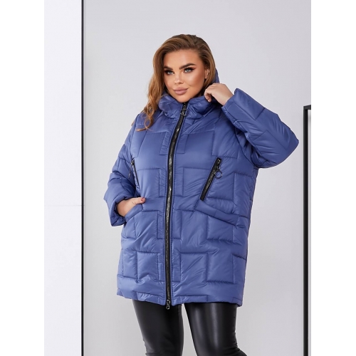 На моделі одягнений розмір 52-54 на тонку кофту. Параметри моделі: 110-86-116 см, зріст 171 см