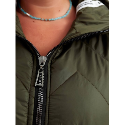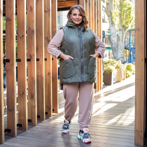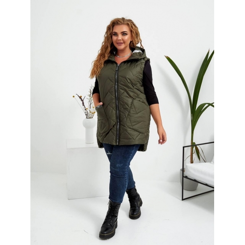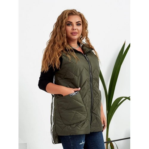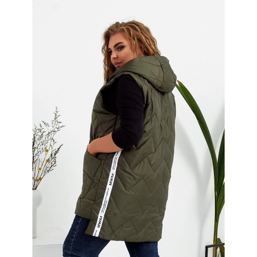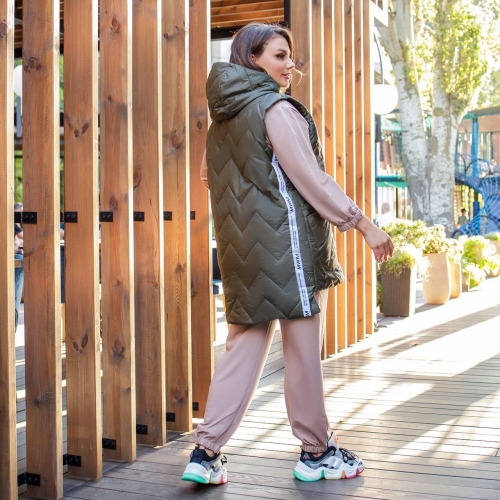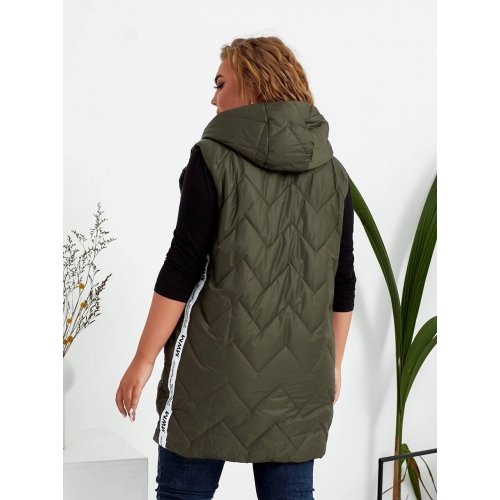 Стильна стьобані жилетка прямого крою з накладними кишенями, зручний глибокий капюшон, декорована лампасами, якісна фурнітура