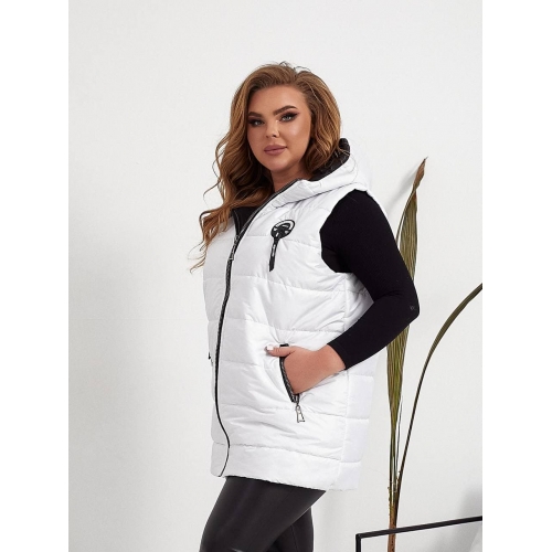 Стильна стегана жилетка прямого крою з кишенями на змійці, зручний глибокий капюшон, декорована лампасом, якісна фурнітура.
