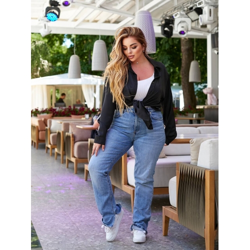 Деталі: подовжена блуза вільного крою з відкладним коміром, спущенною лінією плеча, довгим рукавом з манжетою на ґудзику.