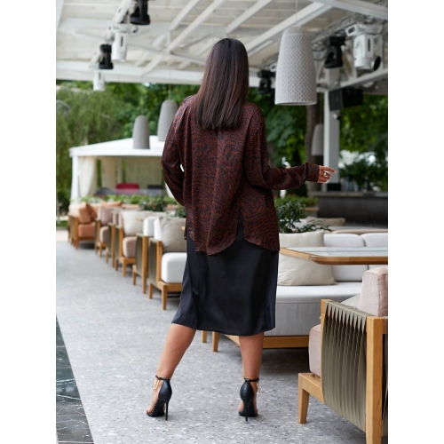 спущенною лінією плеча, довгим рукавом з манжетою на ґудзику.
