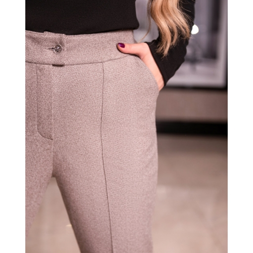 з боків - кишені . Брюки з нашитою "стрілкою" спереду по центру.