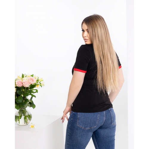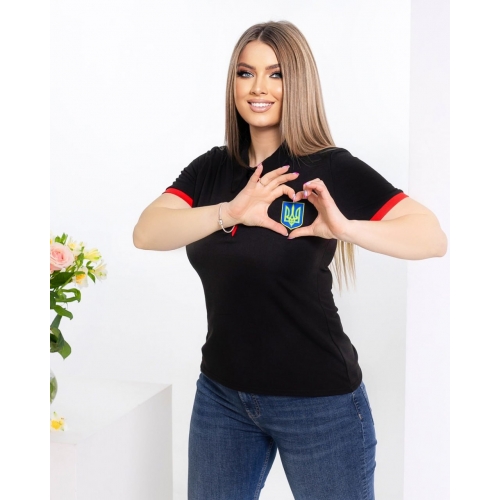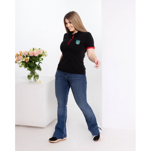 Футболка поло силуетного крою, застібається на гудзики, з патріотичною аплікацією на грудях