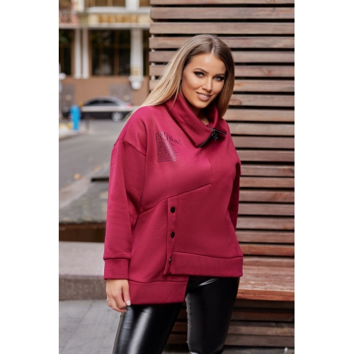 Батник з тринитки на флісі, має довгі рукави закінчуються манжетами в тон, на горловині вшита функціональна молнія, збоку прикрашен декоративними гудзиками.