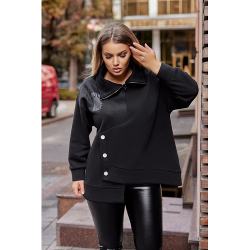Батник з тринитки на флісі, має довгі рукави закінчуються манжетами в тон, на горловині вшита функціональна молнія, збоку прикрашен декоративними гудзиками.
