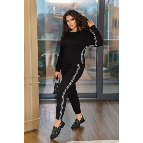 Костюм двійка із якісного французського трикотажу, кофта з рукавом реглан та прикрашена стразами на грудях, штани джогери мають кармани та на поясі резинку