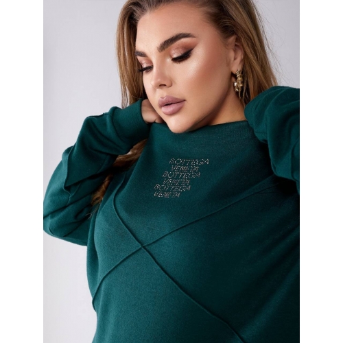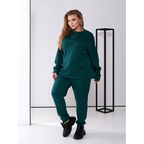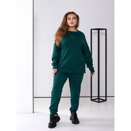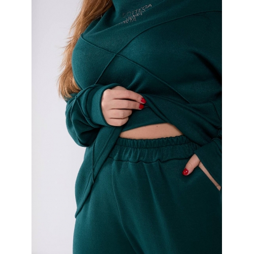 Кофта вільного крою з гарними перестрочками, горло декороване камінням. Штани з високою посадкою, кишені, пояс резинка.