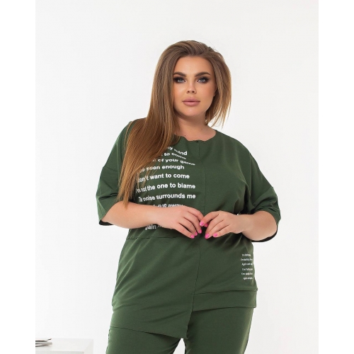 Футболка з асиметричним низом, декорована накатом