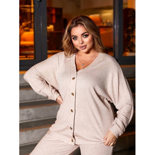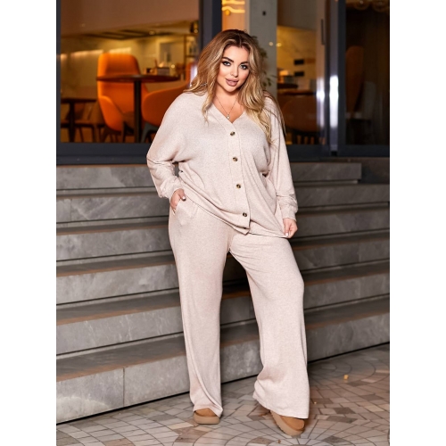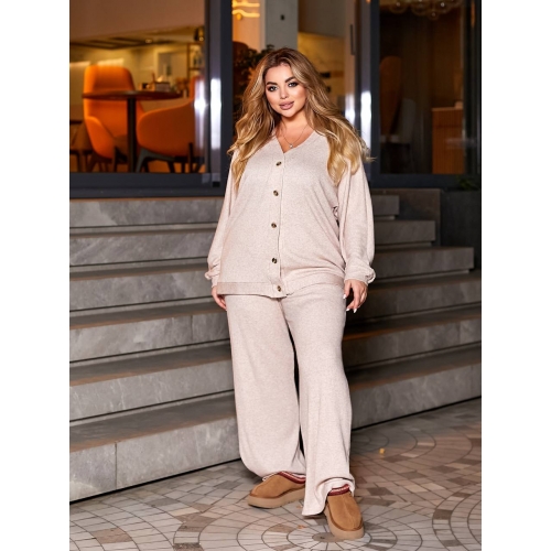 Деталі: кардиган вільного крою з застібкою на ґудзиках. Брюки-палаццо з поясом на широкій гумці з кишенями в бічних швах.