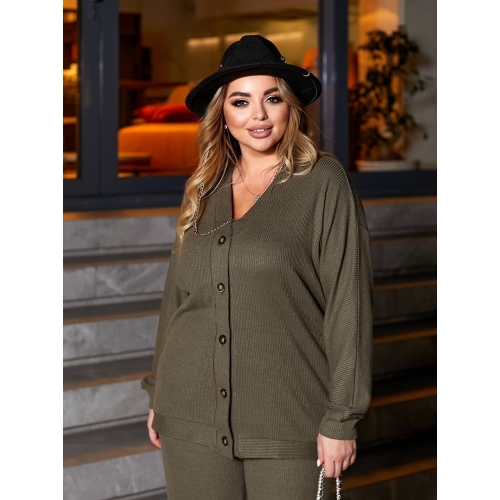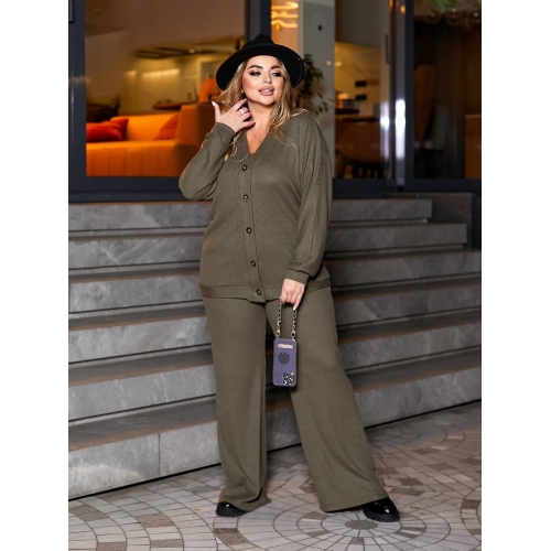 Деталі: кардиган вільного крою з застібкою на ґудзиках. Брюки-палаццо з поясом на широкій гумці з кишенями в бічних швах.