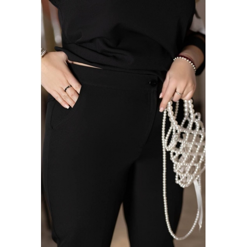 Штани фіксуються ґудзиком та молнією, ззаду резинка на талії, з боків дві кишені