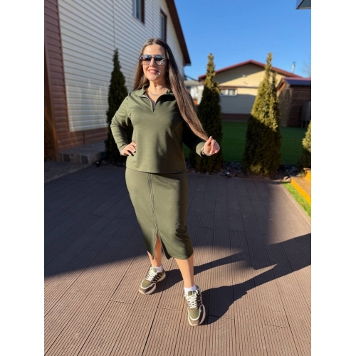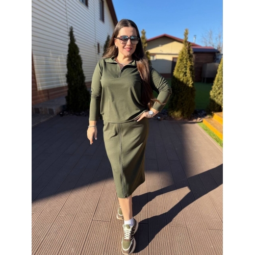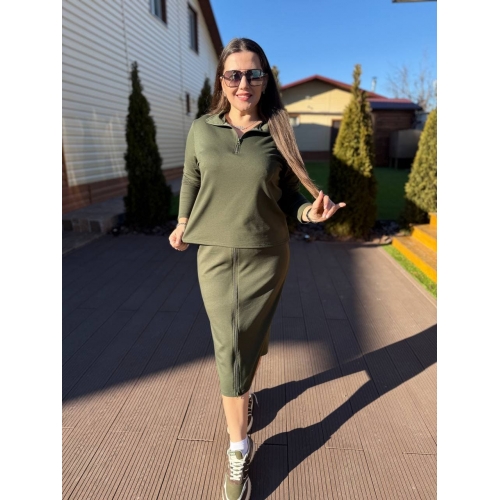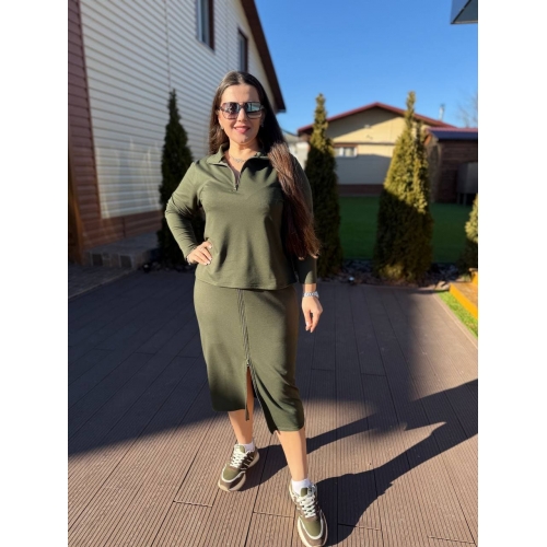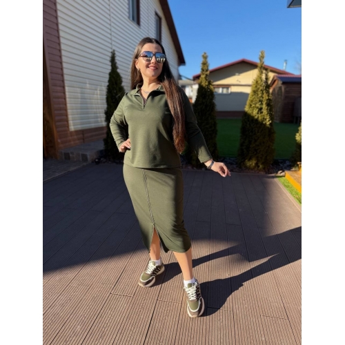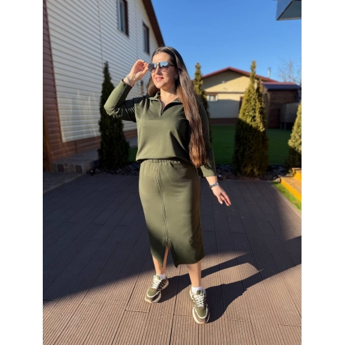 Костюм-двійка з двонитки. Кофта-полузамок на спіральній молнії. Спідниця на резинці, по всій довжина йде спіральна молнія, що видовжує ніжку. Підійде як під кросівки, так і під туфлі