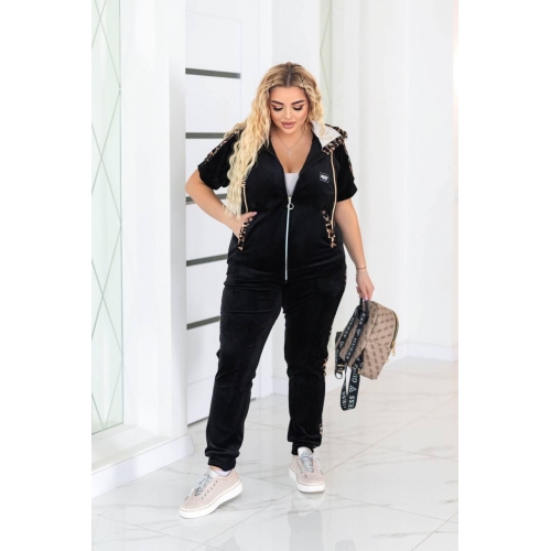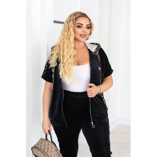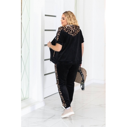 Кофта вільного силуету з капюшоном, кишені листочки. Прикрашений вставками з леопарда та обструкції. Рукав на манжеті.
