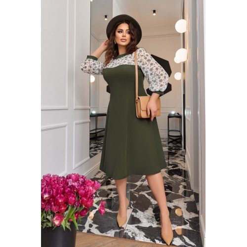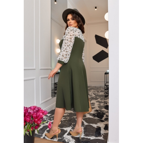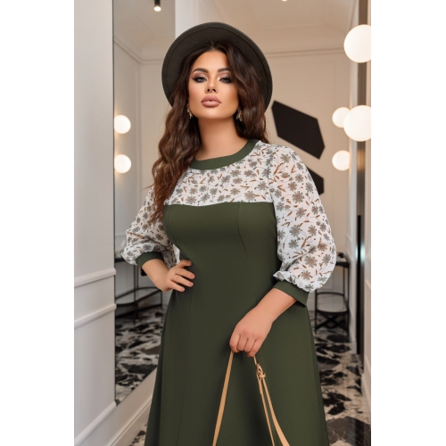 Комбінована весняна сукня із якісної костюмної тканини та легкого шифоном у квітковий принт