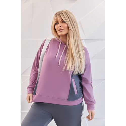 Худи вільного силуету , на поличці по переду зручні кишені. Гарне поєднання кольорів . Рукав на манжеті.
