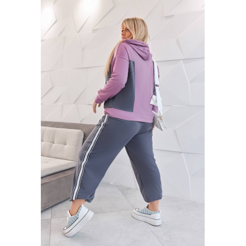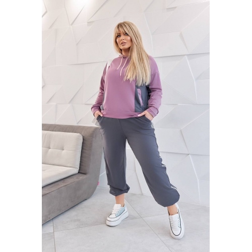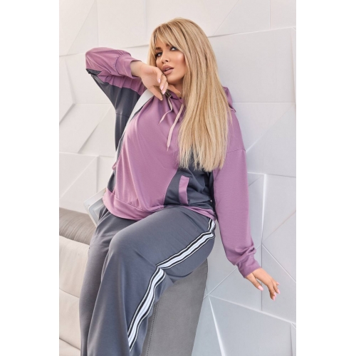 Штани висока посадка, вільного крою. Мають еластичний пояс що забезпечує відмінну посадку та комфорт при русі, по низу на резинці. У штанах є кишені в бокових швах , а також по заду. На штанах стильні лампаси які, гарно поєднуються .Спортивний костюм доступний у різних кольорах та розмірах, що дозволяє вибрати відповідний варіант для кожного клієнта.
