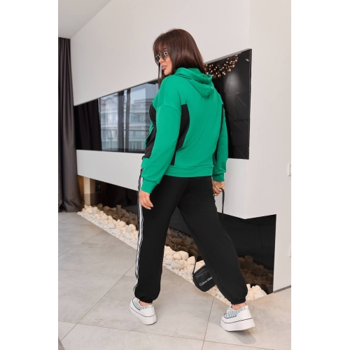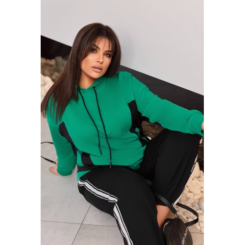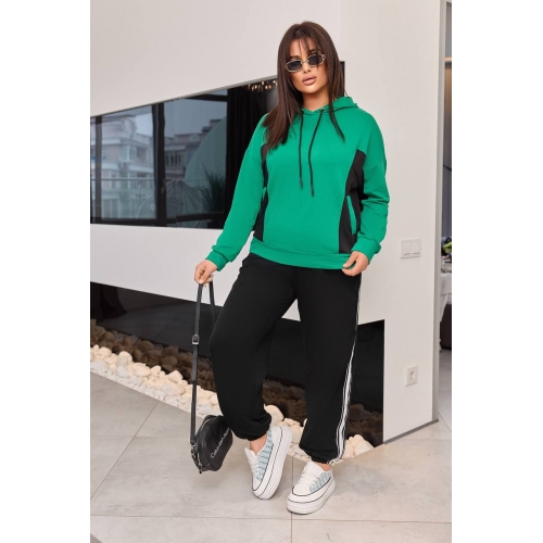 Штани висока посадка, вільного крою. Мають еластичний пояс що забезпечує відмінну посадку та комфорт при русі, по низу на резинці. У штанах є кишені в бокових швах , а також по заду. На штанах стильні лампаси які, гарно поєднуються .Спортивний костюм доступний у різних кольорах та розмірах, що дозволяє вибрати відповідний варіант для кожного клієнта.