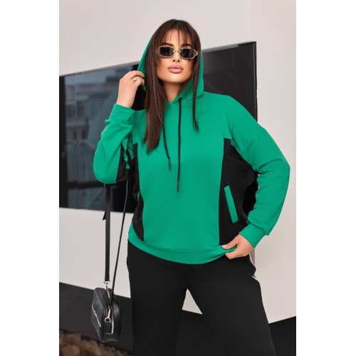 Худи вільного силуету , на поличці по переду зручні кишені. Гарне поєднання кольорів . Рукав на манжеті.