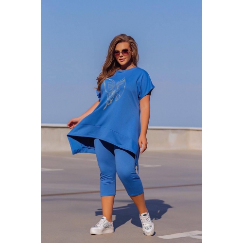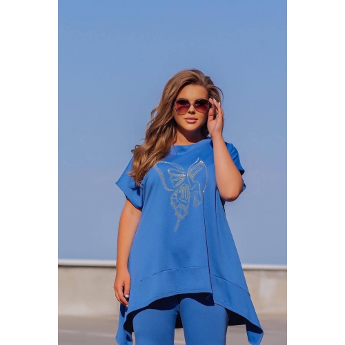 Туніка вільного крою, трапеція, у бічних швах кишені. Полиця туніки декорована малюнком зі страз.