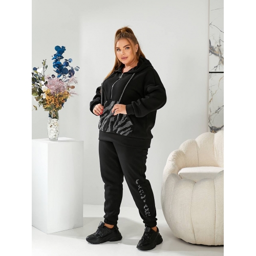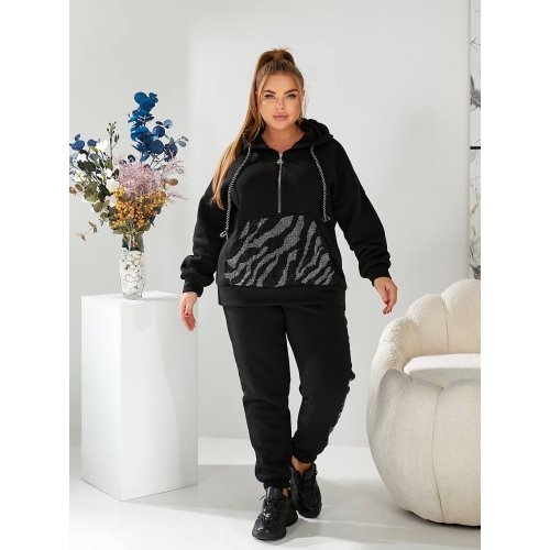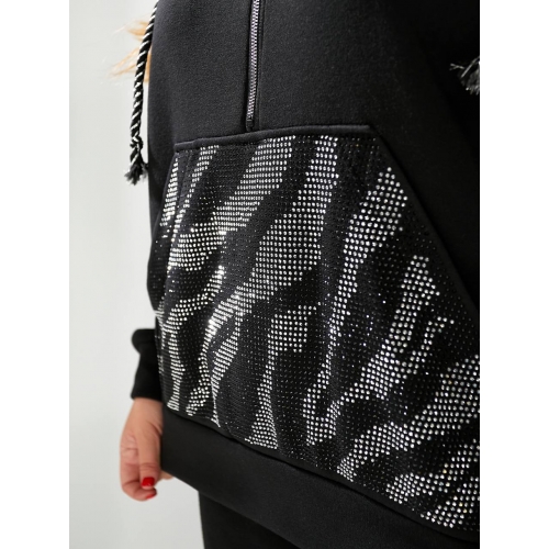 Кофта вільного крою, зручний глибокий капюшон, декорована камінням.