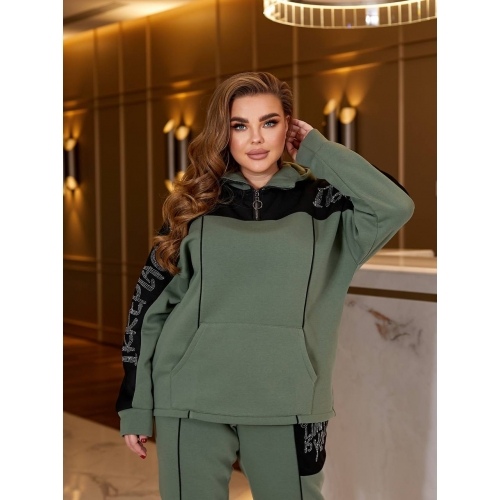 Кофта вільного крою, зручний глибокий капюшон, декорована камінням та кантом.