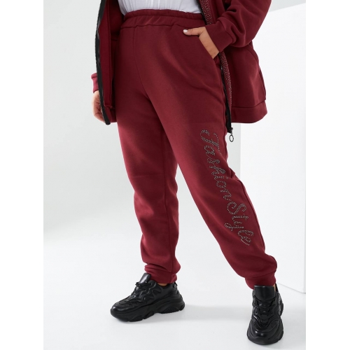Штани з високою посадкою, декоровані стразами, пояс гумка, з боків кишені